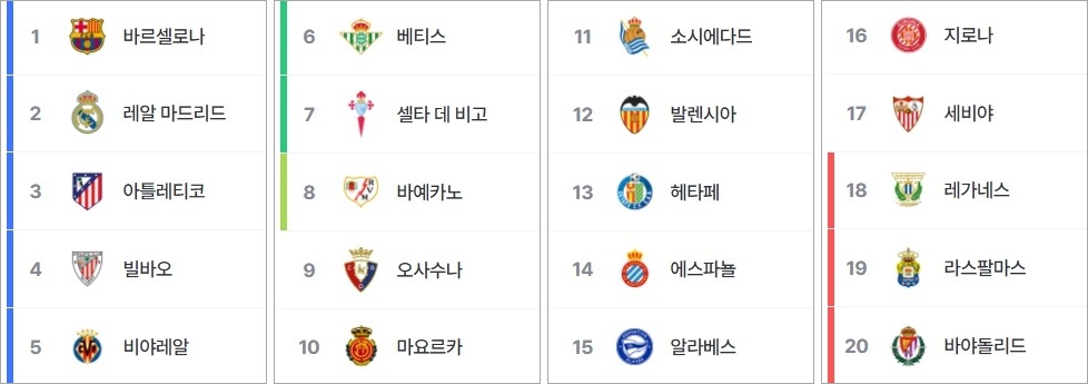 - 바르셀로나 / 레알 마드리드 / 아틀레티코 마드리드 / 빌바오 / 비야레알
