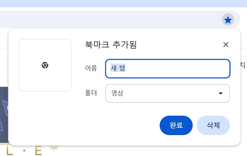 크롬 빈 페이지에서 'ctrl+D' 또는 우측 상단 별표로 북마크를 추가합니다.